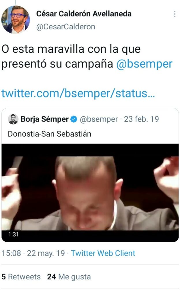 Canción o “cantada”. Podría haber sido ridículo, pero no lo fue. Sémper pidió permiso a su amigo Erentxun para plagiar su “Vuelvo a Amara” y convertirlo en una oferta electoral. Su repercusión fue todo un éxito. La naturalidad y humor con el que el propio Sémper justificaba su atrevimiento despejaron la incógnita inicial.